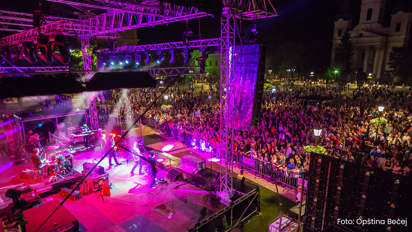 Concerts, exhibitions, films and other cultural events were held at this year’s ‘Becej during night’ manifestation, with Bajaga i instruktori, Dejan Cukic & Spori ritam, Nicim izazvan, Eva Braun and Ruza Magdolna performing at the main stage. It was the second time this manifestation took place in Becej, and it has attracted numerous visitors with its attractive programme. Technical production Skymusic.