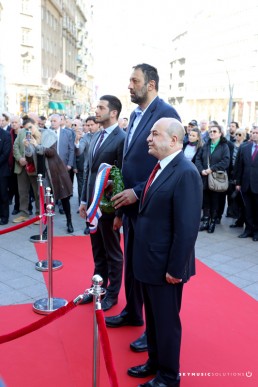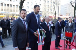 President of the Olympic Committee of Serbia Vlade Divac, Minister of Youth and Sport of the Republic of Serbia Vanja Udovičić and his Excellency the Ambassador of Azerbaijan to Serbia Eldar Hasanov respecting the long tradition laid the laurel wreath at the memorial plaque in front of Hotel Moskva.