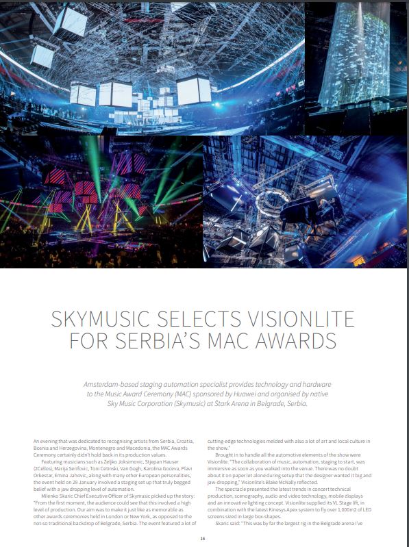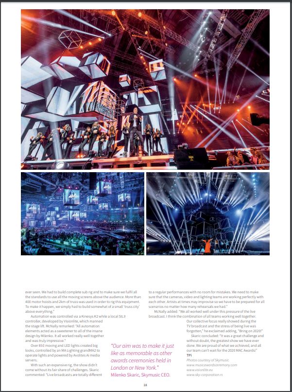 Total Production International (TPi), prestižni svetski magazin specijalizovan za koncertne i festivalske tehnologije i dizajn, posvetio je u svom martovskom izdanju nekoliko strana manifestaciji Music Awards Ceremony.